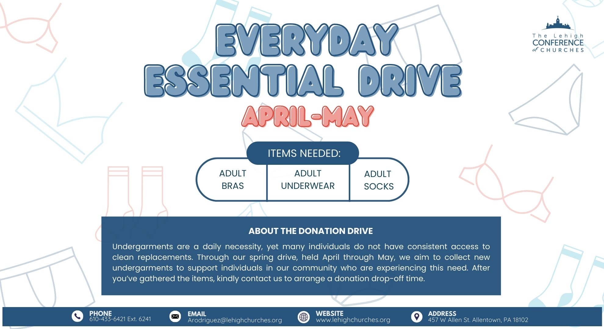 Call 610-433-6421 or email us at info@lehighchurches.org